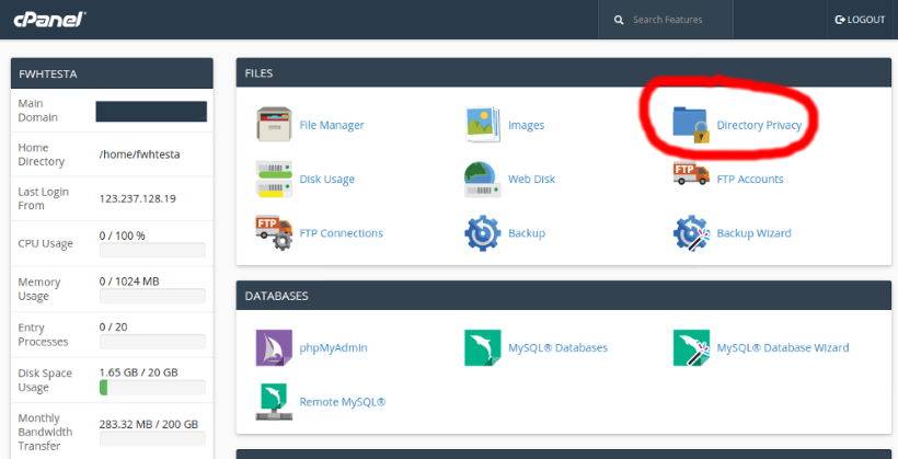 Συνδεθείτε στο cpanel σας και επιλέξτε το εικονίδιο Password Protect Directories.